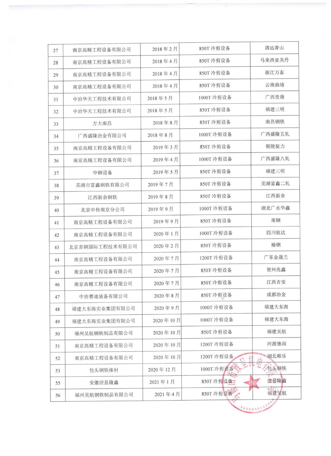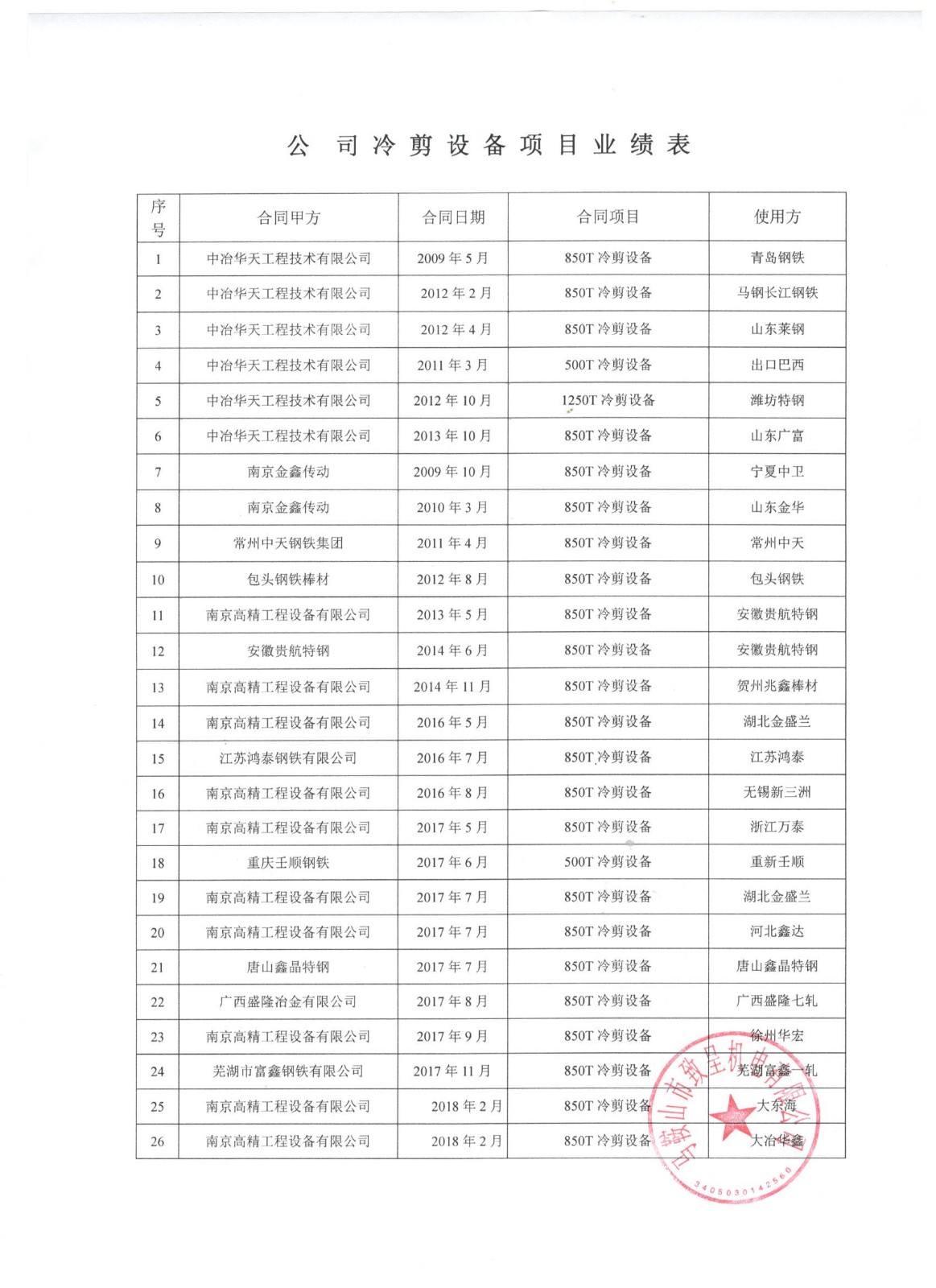 公司近幾年冷剪設(shè)備業(yè)績表